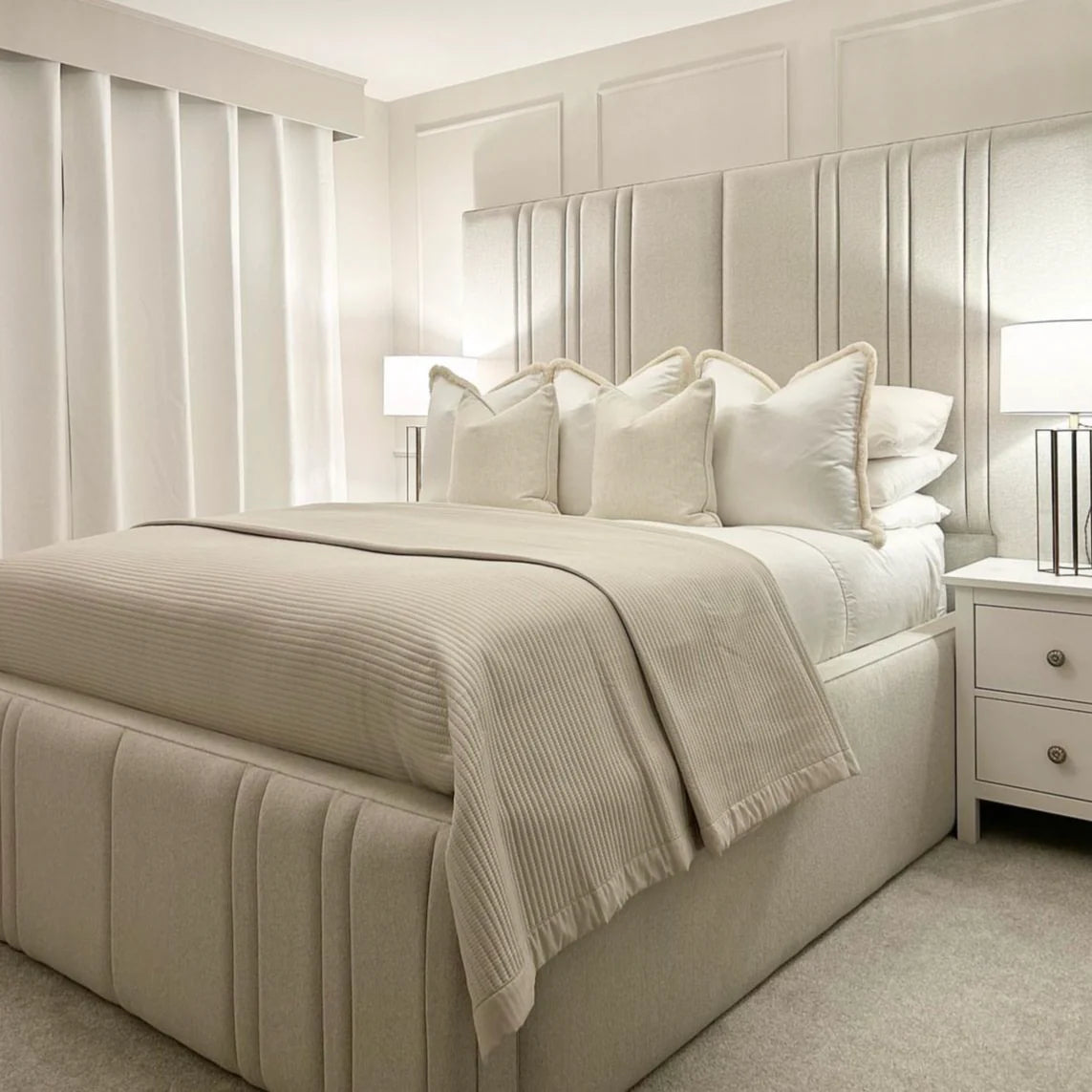 Upholstered Bed in Plush Fabric Single Double King