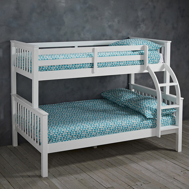 Great for guest rooms, sleepovers and pyjama parties, the Otto Trio Bunk Bed is a heavy duty triple sleeper that offers superb versatility. This single and small double bed combination can be configured as a stacked set to act as a bunk bed or can be separated into a single and a small double (4’) to suit your requirements. Finished in a classic Solid Off White Colour, the Otto Bed system is ideal for providing all the sleeping space you need for a busy family.